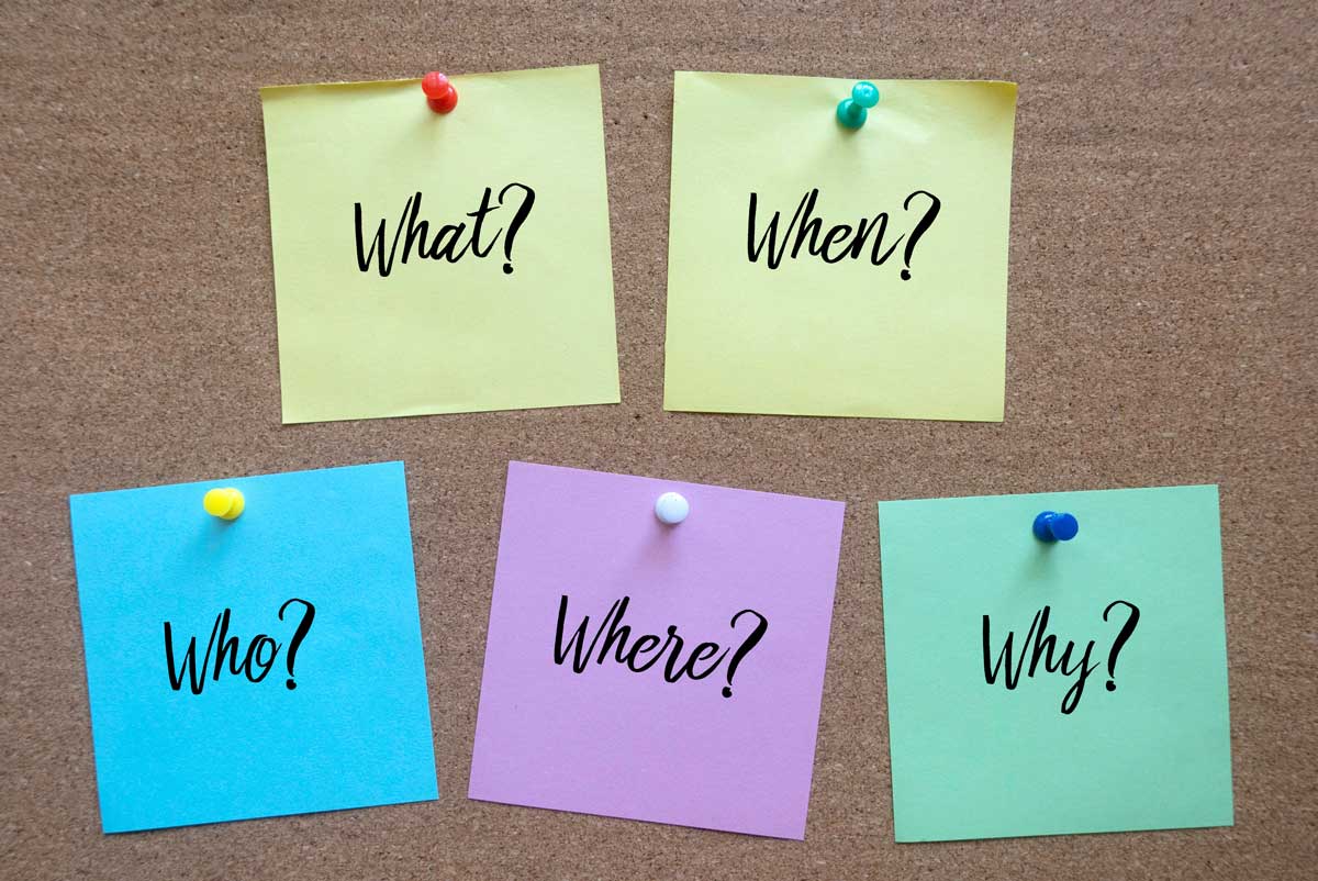 Les différentes questions de la méthode (Qui, Quoi, Comment, Où, Quand, Pourquoi)